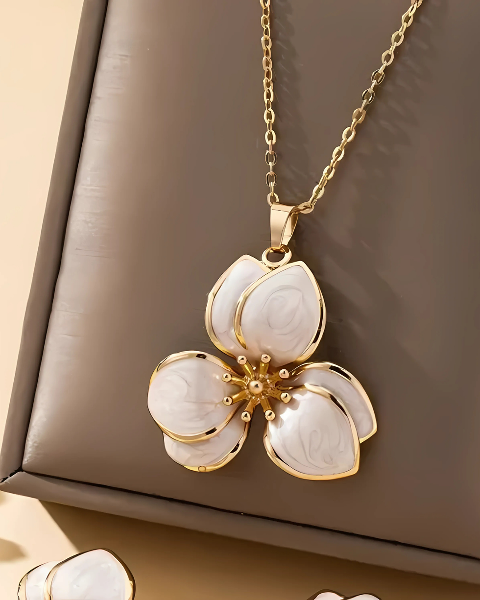 Çiçek Kolye, Sedefli Beyaz | Kararmaz & Alerji Yapmaz